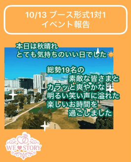 2025/4/13イベント❤総勢15名の素敵な皆様と楽しいお時間を過ごしました✨お話が盛り上がって止まらないブースや明るい笑い声が聞こえてきて、こちらまで幸せな気持ちになりました☺️可愛いカップルたちも誕生いたしました❤おめでとうございます♪