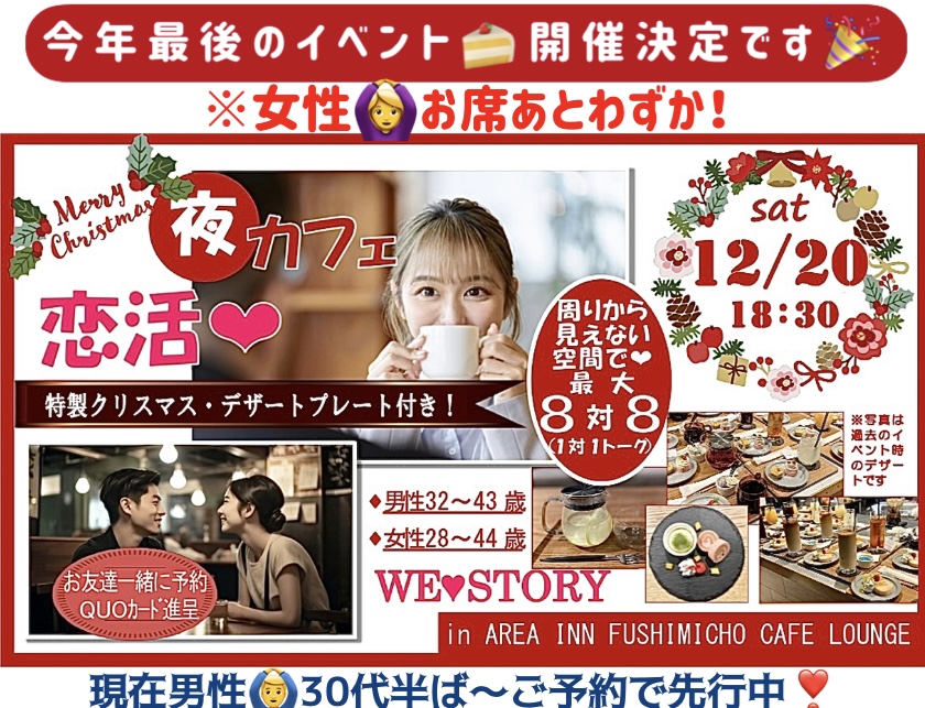 ※このイベントだけの特製Xmasデザートとカフェで今年最後の素敵な出逢い❤