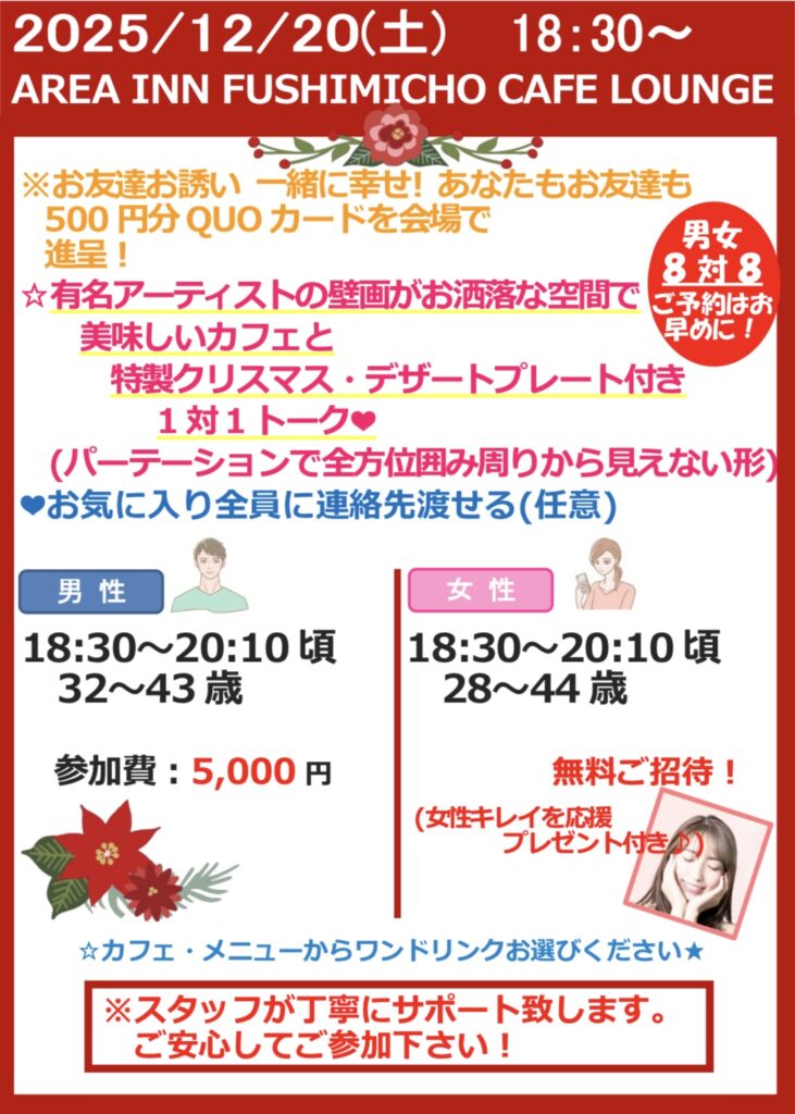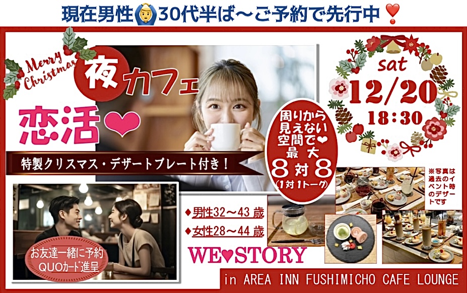 ※このイベントだけの特製Xmasデザートとカフェで今年最後の素敵な出逢い❤
