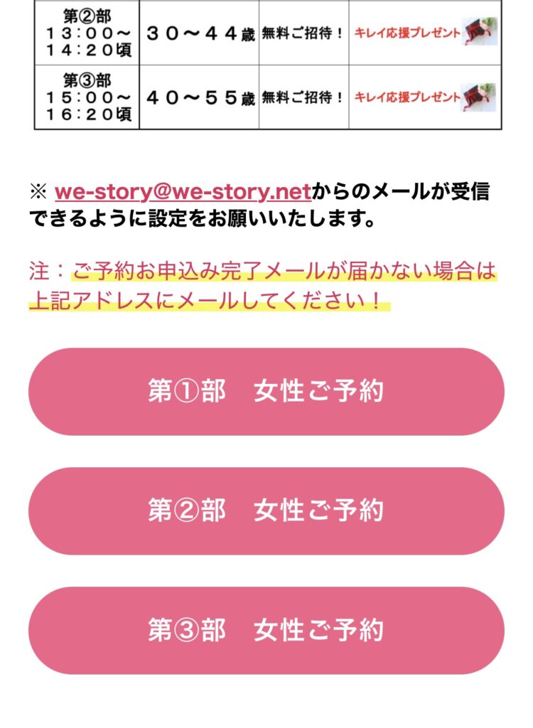 例:ご年齢が女性35歳の場合《第②部 女性ご予約》をタップまたはクリック