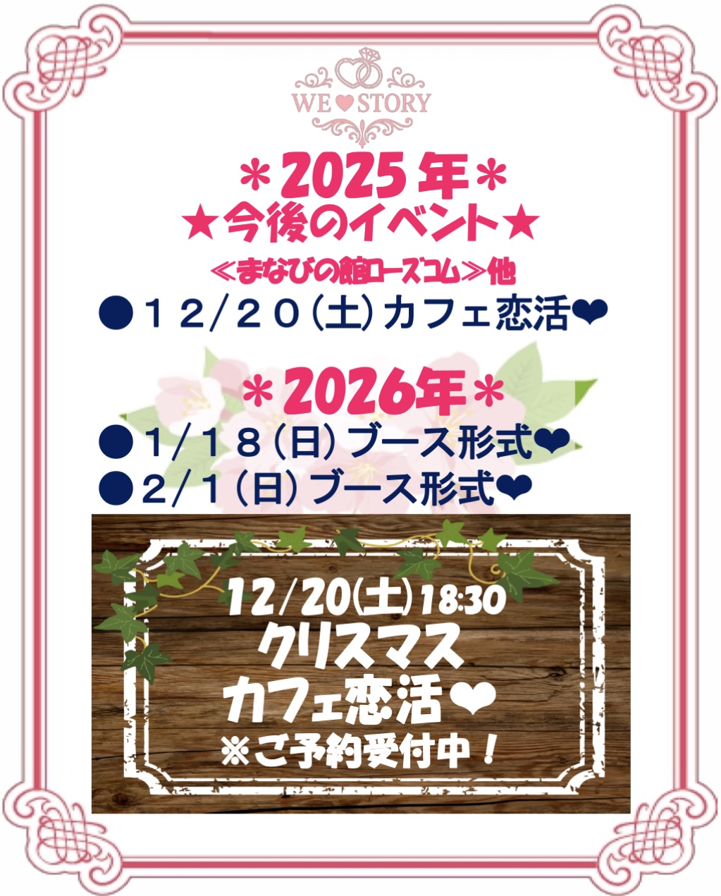 2025/1/18今年最初のイベント、ブース形式1対1トーク♡開催しました🎉総勢20名の素敵な皆様と、楽しいお時間を過ごしました🎉ご参加者の7割以上がカップル成立致しました💐おめでとうございます🩷今年もよろしくお願い致します✨