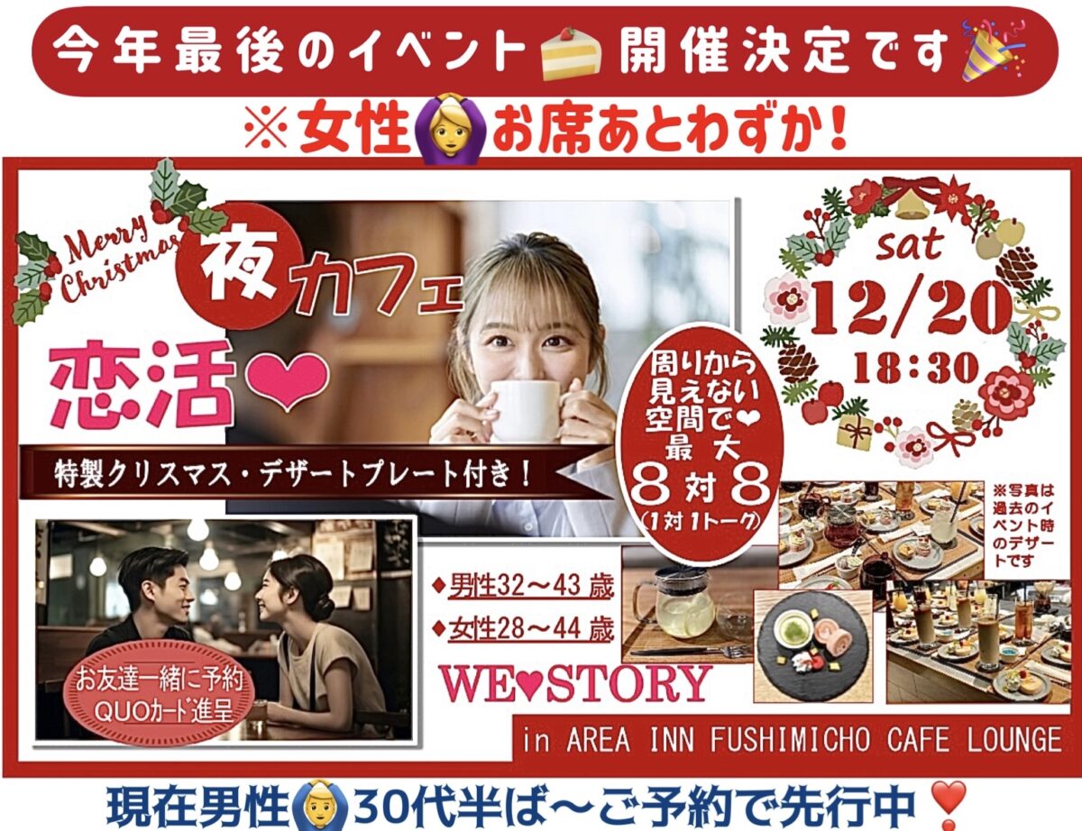 このEventだけの、特製デザートプレート付き🎁の《夕方カフェ*夜カフェ》恋活Eventです❤️土曜お仕事の方もお時間が合えばぜひご参加お待ちしております💐