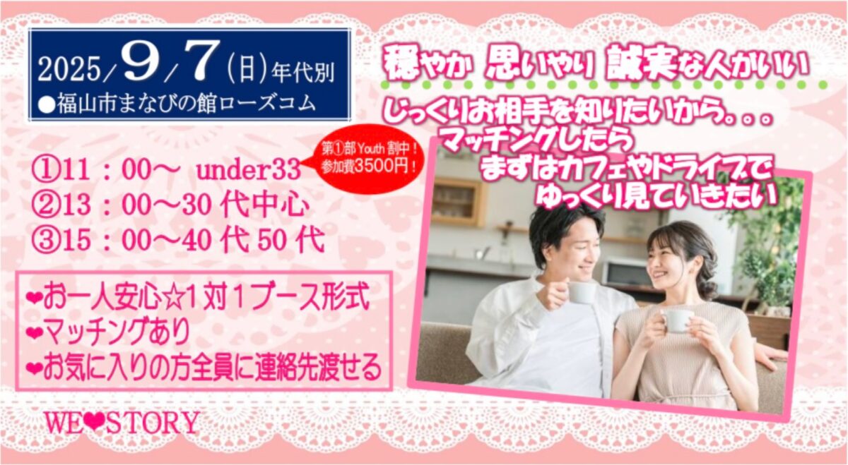 ※マッチングありのイベントになります❤(周りが分かるような発表はなく、その場でカップルお二人だけが分かるシステム)